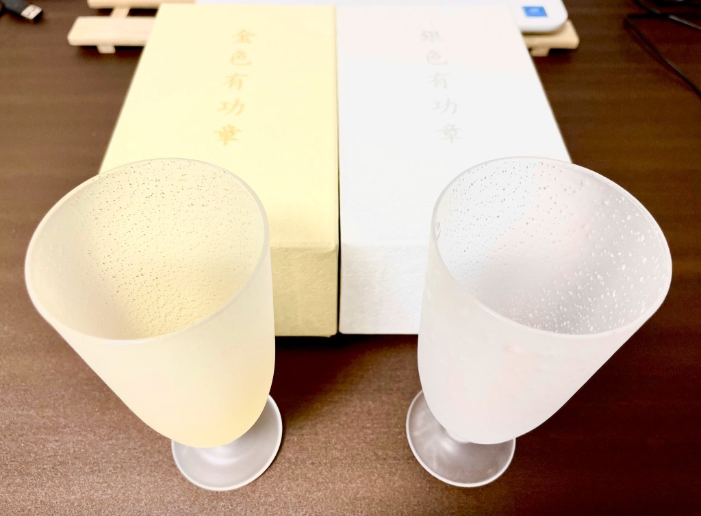献血による場合は、100回以上献血した者に杯式(金色のガラス杯)の章及び葉書大の感謝状が授与されます。※wikiより。